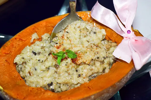 這盆南瓜盅好可愛阿燉飯的味道非常香濃