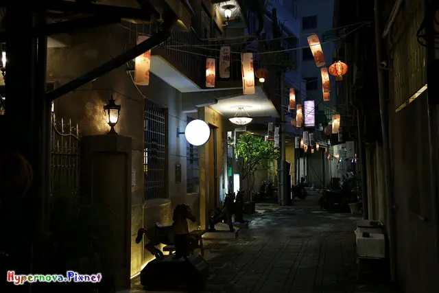 走進巷弄中看到燈籠點亮了巷弄的任何角落
