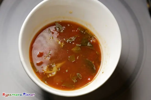 有強烈得水果酸度同時在湯中不時有起司顆粒與馬鈴薯相伴