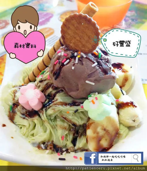 嘿嘿~~眼睛雪亮又腦筋靈活的朋友,看到照片一定秒懂我為什麼最後選擇它!其實只要選擇了雪花冰就可以同時吃到霜淇淋的雙重享受了啊~~ 這真是兩全其美的好辦法!我真聰明~(撥瀏海)這碗雪花冰真得我心吶!(大心)
