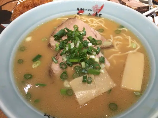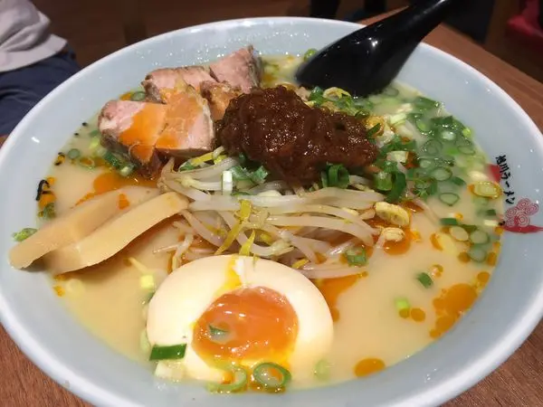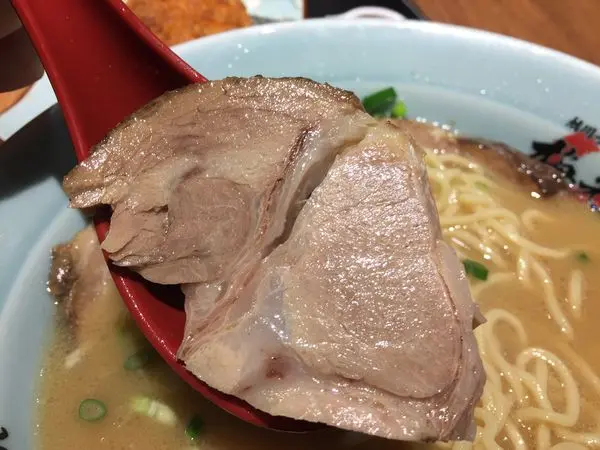 因為小子共食所以請店員將鹹度減半,上桌時喝了口湯還是屬於重口味但非常順口就是。搭配的麵條Q彈而叉燒厚實,整體來說我還滿愛的,明明被可樂餅撐飽了胃卻還是兩三下就吃到見底,是碗合乎我口味的拉麵。