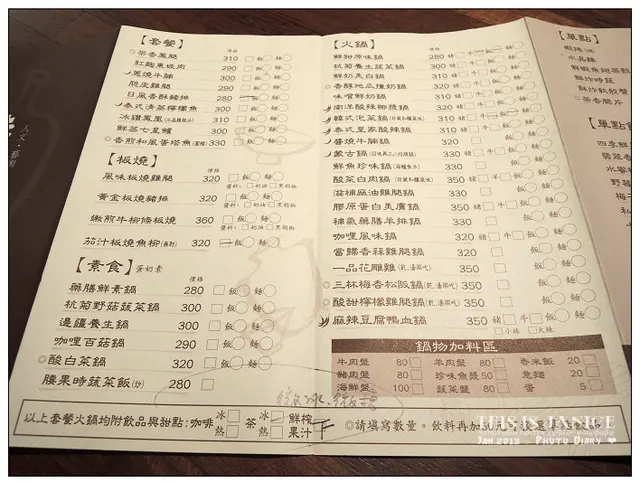 套餐火鍋均附飲品(冰熱咖啡、冰熱茶、鮮榨果汁)與甜點