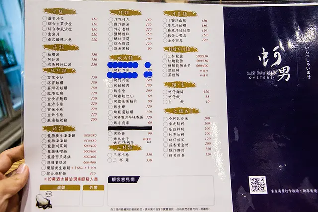 店內的菜色除了他當初在武聖夜是最有名的烤蚵之外
