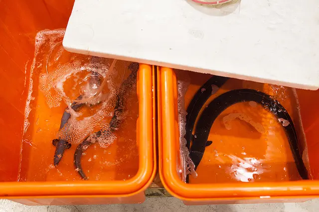 在小白板底下還有兩隻活生生的鰻魚跟白鰻