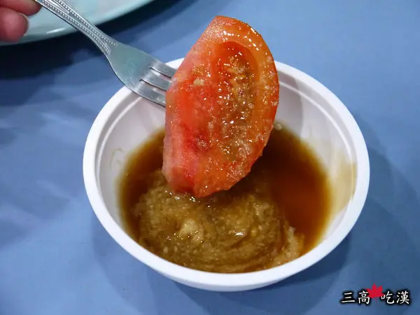 番茄也特地附上了糖、薑、醬油等調製的醬汁,其實這吃法滋味北部也有,只是偶爾得見。