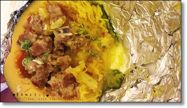 南瓜是帶皮半顆,上層有粉蒸炸排骨,底層還有番薯!!!!