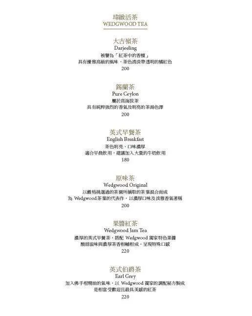 以上菜單下載自➨Wedgwood Tea Bar - 南紡夢時代粉絲頁