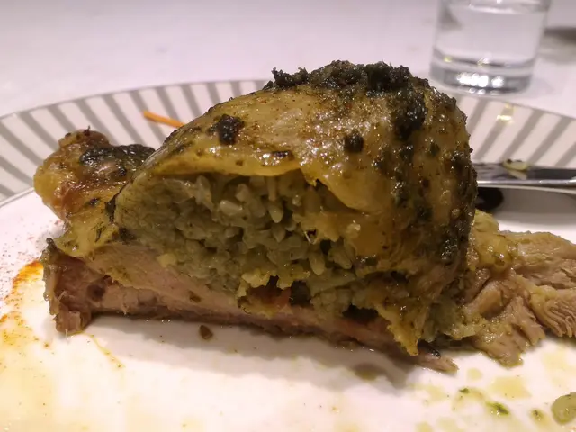 雞腿排裡塞滿了青醬燉飯..也不知塞了多少..吃完一整個飽..
