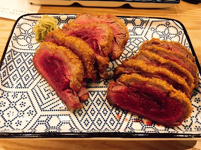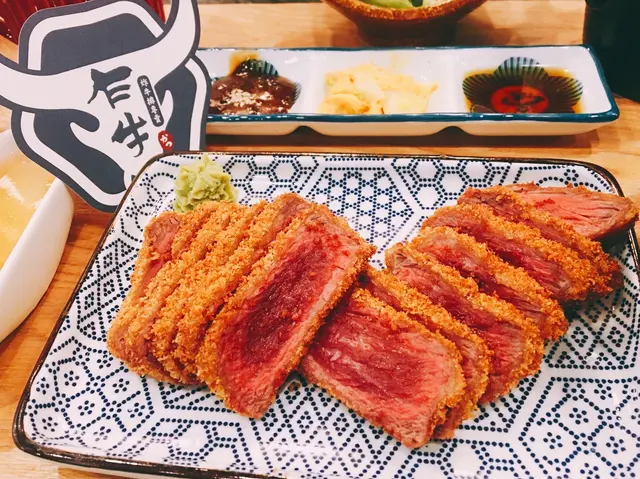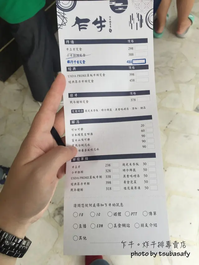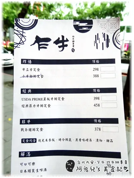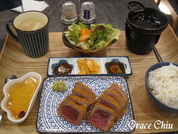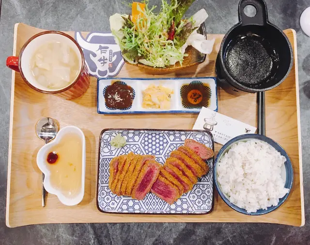 最近台北陸續開了好幾家炸牛排店之前吃過位在新光三越信義A11的京都勝牛文章在此→【京都勝牛】在台灣也吃的到炸牛排吃完印象很好 這天來SOGO忠孝館血拚結束時友人看到位在後方的乍牛 炸牛排專賣居然有座位我們就決定來試試看囉回來後爬文才知道 乍牛原來是王品集團底下的新品牌我對王品集團的餐廳其實一直沒有甚麼好感(純粹個人喜好)幸好這天吃完印象還OK鄰居家的嫩嬰 陪著我們逛街吃飯好乖巧乍牛的餐點樣式並不多 大約七八種而已聽了服務生推薦 分別選了有限量的套餐XD菲力牛排定食(458元)配菜有沙拉、小菜、味噌湯(不可續)白飯可以續一次另外附上鐵盤讓客人加熱 想要吃熟一點的可以用菲力大約是三分熟說實話這麼生我也是敢吃的而且菲力就算這種熟度 咬起來也不會太費力但在烤盤上煎熟一點 我發現味道更好耶翼板牛排定食(428元)翼板的熟度比較像五分熟點餐時服務生說 翼板的部位口感上會比較紮實因為鐵盤實在很有趣所以我忍不住都拿上去稍微煎一下XD聽到ㄘㄘㄘ的聲音 好療癒啊我們一致覺得煎過以後再吃 兩種肉吃起來都更軟嫩甜度也因為熟度差異 會有不同的層次感我們都覺得挺好吃的耶我先吃飽幫鄰居顧一下小孩小龍底迪好可愛唷吃得好撐再走一大段路去買咖啡最近很紅的咖啡店 咖啡好喝 價位也OK可惜內用環境普通了些 建議外帶就好啦吃完印象其實還不錯牛排本身味道挺好 其他配菜表現也OK只是因為我剛吃過『京都勝牛』京都勝牛的餐點選擇更多價位上差不多而且白飯、湯、高麗菜都可以續我會對京都勝牛再訪機率更高一些但如果你剛好在這附近又想吃炸牛排那麼乍牛也不失為一個好選擇囉…查看更多