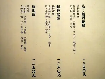 印象中是山藥切成細絲,淋上微酸的和風醬汁,上頭搭上二小串細密如米粒的海菜-海葡萄,山藥脆中帶黏,海葡萄太過細碎吃來並無特殊感受。煮冰肴(照片右上)煮冰肴是膠質凝結而成的海鮮凍類。口感有如果凍,調味清淡爽口,外觀透明,清楚可見裡頁的海鮮及各色蔬菜等,看來極為晶瑩討喜,實際嚐來卻不特出。前菜 前菜五菜小茄子田樂燒約莫指頭大小的日本茄子切半加上味噌醬(?)及芝麻,口味濃郁偏甜章魚柔煮章魚腳切斷,口感軟而脆,非常好入口,可惜份量極為精緻,一口就沒了。九孔五日真蒸揚這道沒嚐到,不確定味道。川海老旨煮一看到長臂河蝦就很懷念,兒時常自己去河邊抓來玩啊XD雖然是用煮的,殼卻很柔軟,一點都不浪費全咬碎吞下~毛豆就毛豆…這道是來充數的吧囧唯一可取之處是裝在小籃子中超可愛…婆婆欣賞半天,忍不住問小籃子可不可以帶回家,詢問後當然是不行,這是特置的餐具啊…… 椀 玉米豆腐 這道嚐了一口,高湯調味清淡,豆腐口感偏紮實,吃不太出來玉米味。お造り 綜合生魚片鮭魚、旗魚、比目魚(白肉魚)三種共六片,新鮮,肉質甜美軟嫩,但並不特出,以碎冰裝盛端出,保鮮度不錯。焼肴 香魚姿汐燒香魚肉質細緻,可惜不夠肥美,單吃味道已足夠,搭配的翠綠色醬汁酸度驚人,連嗜酸的我都被嚇了一跳,酸到會嗆人了……這麼強烈的醬汁跟纖細的香魚感覺不太搭啊~ 炊合せ 蟹肉蛋皮包夏季野菜這道菜上來時印象還不錯,因為裝盛的瓷碗花紋鮮明豔麗,蛋皮包裏著冬瓜(?),味道極為淡雅有後韻。 揚肴 白身魚吉野揚佐五目芡我對魚肉料理基本上很無感,這道更是無感到了極點,我想廚師應該是希望我們嚐到食物本身的原味,但真的味道很淡……連食物本身的原味都嚐不太出來囧飯 旬御飯汁 味噌湯香の物 綜合漬物旬御飯就是混合蔬菜同煮的菜飯,口感稍偏溼軟,若能煮乾些,讓米飯帶有嚼勁會更合我胃口。 漬物很神奇的是大家嚐到的鹹度不一,像是有的小黃瓜很清爽,有的小黃瓜鹹得要命,看來品質不太穩定。味噌湯鹹度適中,帶些微甜,是我喜歡的口味,湯跟飯都可以續,我很開心的續了二碗湯。附帶一提,加賀屋使用的餐具,無論是瓷器或漆器都很精緻美麗~喜歡的朋友可以到一樓參觀選購,不過價格也非常的高貴……囧 水菓子 甜點、季節水果 哈蜜瓜很新鮮很甜~這道絕對吃得出食物原味。 檸檬雪酪這道很有趣的在於是以半顆挖空的檸檬為容器,中間口感細致、酸甜清爽的雪酪,自然的酸味夾雜著淡淡的檸檬特有苦味,百分百的天然原味,我非常喜歡這道甜點~介紹完加賀膳,接下來介紹金澤膳食金澤膳,1200+10%主食有三種料理,可以選擇一種喜歡的料理,分別是綜合生魚片、綜合天婦羅、丸子鍋。先付小鉢 兩種鮮蝦白芋莖拌卯花煮過的芋莖搭配剝好的白蝦,調味偏淡,芋莖特殊的口感是最大的特色。海葡萄佐三杯酢 印象中是山藥切成細絲,淋上微酸的和風醬汁,上頭搭上二小串細密如米粒的海菜-海葡萄,山藥脆中帶黏,海葡萄太過細碎吃來並無特殊感受。因為小姑不能吃海菜類,所以請餐廳幫忙換掉有海菜的餐點,這道是涼拌筍類,小姑覺得很好吃。前菜 前菜四菜小茄子田樂燒約莫指頭大小的日本茄子切半加上味噌醬(?)及芝麻,口味濃郁偏甜章魚柔煮章魚腳切斷,口感軟而脆,非常好入口,可惜份量極為精緻,一口就沒了。川海老旨煮一看到長臂河蝦就很懷念,兒時常自己去河邊抓來玩啊XD雖然是用煮的,殼卻很柔軟,一點都不浪費全咬碎吞下~細卷星鰻串星鰻口感細緻,調味鹹甜適中,好吃,但份量太少…很沒有存在感。 酢肴 博多酢肴所謂醋肴就是醃製蔬菜切塊,番茄、高麗菜絲、昆布等,搭配海帶及小黃瓜。小黃瓜雕花得很美,吃來清脆爽口,但小姑吃到一塊超鹹難以入口,不曉得是怎麼回事…鍋 丸子鍋服務人員先於桌上放好了酒精燈及碗具等,主鍋上桌時,我跟老公互看了一眼……心裡想的是同一件事,這鍋也太小巧可愛了吧。 火鍋使用的是陶鍋。大小的約就是一般常見的三媽臭臭鍋的程度…然後三媽臭臭鍋的料還比較豐富…三顆丸子,五至六樣青菜,大約一碗半份量的湯…沒了。 丸子比想像的好吃,看似平淡,吃來卻滋味鮮美,口感富有彈性。天婦羅 綜合天婦羅這道是陪客點的,所以不好意思搶食……只有圖片,至於陪客的心得是還滿好吃的。お造り 綜合生魚片跟高價位的生魚片盤比來,種類較為豐富還多了海膽,但是沒有搭配碎冰讓我小失落XD種類為花枝、鮭魚、紅魽(?)、比目魚(白肉魚?)再加二瓣海膽。採用現磨的芥末是小小亮點,可見餐廳對食材的用心。海膽鮮度頗佳,嚐得出自然甘甜,可惜我六月去澎湖時吃了一大堆現抓現剖的生活海膽,被養刁了…生魚片都很新鮮,軟嫩甜美,好吃。 …Read More