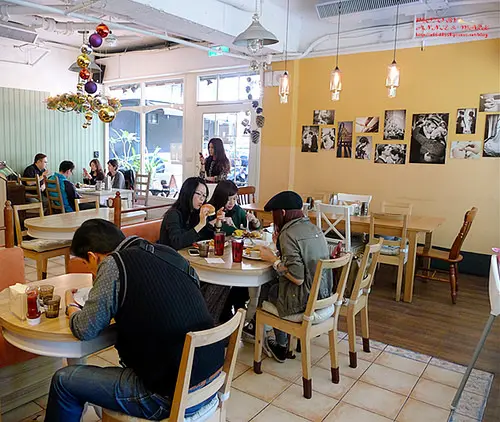 沒有華麗的盤飾,也沒有從法國回來的廚師,卻有著新鮮及樸實的味道!方糖咖啡館 Sugar CafeTEL: 02-2709-9960台北市大安區仁愛路四段406之1號1樓 話說啊~方糖的煎鍋蛋糕隨便在網路上搜尋,洋洋灑灑的少說都好幾頁格友分享資訊,那誘人的軟綿綿蛋糕的模樣,完全深植在我腦海裡,YA~終於有機會吃到它嚕!因為也有好一陣子沒有吃早午餐,嘴饞得很,所以打算來個一石二鳥這天我們沒有訂位,約莫也是下午2點多左右到,當然是客滿,還在外頭等了一會兒! 從門口開始就佈滿濃濃的鄉村風,橘黃色亮眼的外牆,非常顯眼,特愛這扇窗和壁燈,這畫面很有小歐洲裡街頭咖逼廳的調調咧! 室內的木質桌椅感覺比較溫馨一些!風格也分成幾個區塊,我們入坐的區位是類似日式雜貨風,是說,現在看起來才覺得我們當天的坐位好小喔!感覺馬克都快把桌子給吞進去了! 坐位其實還挺多了,裡面這區是屬於比較優雅的風格,但是坐位之間的間隔好像有點太靠近了齁,這樣情話綿綿話都會被鄰座聽見咧! 靠窗的復古沙發區挺有朝氣的,光線透過窗戶灑落,端著一杯咖逼,假掰的翻著雜誌,這不是韓妞服裝雜誌會出現的畫面嘛!是不是! 來看一下MENU先~本來想單點一個煎鍋蛋糕,後來發現義大利麵加130元就可享一份煎鍋蛋糕,嘿~划算多了捏! 噢!終於吃到早午餐了!(馬克:要吃早餐?不早說...巷口早餐店就有啦?!(Annie:ㄘㄟ!早餐店有這陽光嗎?有這日式雜貨風嗎?有這鄉村味兒嗎?對馬克來說,樂子和小貳樓的早午餐才是他心中稱得上正餐的餐點,其它的都只被他歸類為"早餐"等級,因為他吃不飽!哈 好了~別管馬克,快來看看分享今日餐點,義大利麵升級套餐的濃湯,非常好喝,很香濃,卻沒有很重的奶味,我喜歡! 法式香料吐司早午餐,2片法式吐司,帶骨香腸,現刨薯餅,和炒蛋,炒蛋是完全沒加起司,就是清炒蛋,咕溜咕溜口感,光灑個鹽就很美味了,再來這法式吐司雙面沾附蛋汁後再去煎得酥酥的,一點也不油灑上一層糖粉,不用沾蜂蜜就好吃了咧!帶骨香腸的口感也不賴,口味上不會過鹹而且扎實卻不生硬。 看起來好像很澎湃沒錯,可是分量好像也沒有很多,還是我最近胃口變大了?!男生點這份可能會吃不飽,女生應該是剛剛好一餐啦! 特別要說說這薯餅,刨得一絲一絲,雙面煎得微酥,熱熱的口感很棒!上桌後,這片要趕緊吃掉,放冷了會變軟,也會有油膩感,所以還是得趁熱吃喲! 蛤蠣松子青醬義大利麵,我個人覺得青醬過於濃稠,麵幾乎有些拌不開,當然這麼稠,味道一定很夠味啦!蛤蠣和松子也給得不少,若是醬汁別太疙,應該會更美味啦! 麵條的軟硬度也適中,份量也不算少,單點和套餐都還蠻划算的耶! 另外單點的炸薯條,會點這個,純粹是別桌的薯條,看得我直吞口水,所以又忍不住又加點一份(就是貪嘴又拍款啦)ㄟ~不過還真炸得酥酥脆脆的,好吃耶!哈哈 早午餐和套餐的兩杯飲料,一杯是葡萄柚汁,一杯莓果茶,不過坦白說,2杯飲料都普普,後來爬文才發現大家都推薦它的咖逼捏~早知道就點現煮的咖逼了(淚) 升級套餐的獨享煎鍋蛋糕,香蕉口味,真的連鍋子都上桌了咧,比裝盤還更有視覺效果啦!因為是套餐升級版,所以只有基本的一層蛋糕,這可是方糖的扛棒料理咧!上面點綴著奶油,香蕉和巧克力醬,熱呼呼的香氣四溢,吼~實在令人凍未條啦! 一口咬下後,終於知道它為何如此迷人了!軟綿綿的蛋糕體,鬆軟卻不空洞,充滿了奶蛋香氣,沾上一點點巧克力醬或糖漿,每一口都很有滿足感哪(灑花) 第一次初訪方糖,早午餐和煎鍋蛋糕的確很令我滿意~挺令人回味的!至於餐廳的風格,可能大家都把室內拍得太美了啦!害我期待過高!哈沒有很徹底的雜貨鄉村風啦!就一個區塊一個區塊的,反而覺得雜貨顯得凌亂,ㄚ~是說..雜貨=亂嗎?!噗~我亂說的啦!!嘻總之~為了吃到那三層的煎鍋蛋糕,絕對會再次照訪的啦!…Read More