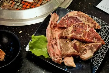 中秋節就要到了說到中秋節絕對不會忘記要賞月吃月餅吃柚子近年來越發興盛的烤肉也是一年比一年誇張燒烤店從吃到飽到高價位的單點式在中秋節都是一位難求夯到不行這天要體驗的就是炭火燒烤(吃到飽) 提早感受一下中秋節的氣氛 位在某公寓的三樓從一樓的巷口就有指示牌 還算是挺醒目挺好找的 醬料區瓶裝飲料區有可樂、雪碧、美麗果......一旁則是鋁箔裝的果汁當天的小菜盤--煙燻鴨胸 煙燻製品的獨特味道一直以來我都不是很習慣主觀的覺得很普通上方淋的醬料對我來說也太過於濃稠了點 不過擺盤色澤倒是讓人很有食慾 價位平日午餐$399 (升級成頂級餐$599)晚餐及例假日$499 (升級成頂級餐$699) 一開始店員會先上比較基本的肉盤最先的肉盤都是"風味餐"就可以點選的 這肉塊哈比個人覺得烤起來口感很不錯軟嫩易嚼又沒有太多多餘的筋 上選沙朗 香烤雞肉 一開始店員就先來為我們解說一下每種肉品怎麼考會比較好吃順手的就幫我們烤了好多種的肉 雞肉嫩又好吃 搭配著他們特製烤肉醬微微的麻還挺開胃的 之後又加點了海鮮類 不過我真的要講一下他們家的白酒大蛤蜊這這這這這....這光看就知道比起一般蛤蜊可能還小了些更別提他跟大蛤蜊差了十萬八千里看到這個我和偷米哥完全是大傻眼的狀態 還好不腥不臭的現烤生蠔稍稍的挽回了一下局面不然用餐的興致瞬間削了大半 接著我們看到這天第二個大傻眼的食材---安格斯牛小排來人阿 快把它拖出去斬了我左看右看上看下看看起來活脫脫就是一塊安格斯牛油結果就是我和偷米哥完完全全不敢吃 安格斯頂級牛肉、安格斯肋眼牛肉 油花的部分分布均勻店員有特別提醒烤到內裡稍微粉紅色的時候是很好吃的不過雖然口感真的不錯但是總覺得同時伴隨著的還有一股濃濃的油耗味 實在是讓我敬謝不敏吃幾口後我完全是舉白旗投降 這時候深深覺得加價的肉沒有比肉片好吃傷心之餘還是忍不住點了一份年糕烤肉沒有棉花糖或是年糕做個結尾就覺得少了甚麼 自己嘗試烤了一兩片之後偷米哥有些痛苦加點無奈的眼神讓我不得不求助店裡的年糕達人親自示範了兩種不同的烤法明明是一樣的東西怎麼她烤起來就真的恰到好處的外脆內Q 烤到像這樣就差不多可以了 沾上煉乳和花生粉後一口吃下超級滿足來先說說好的地方吧肉片的口感都中規中矩還算不錯店員親切健談 也樂於分享烤肉的小小撇步 這讓我覺得就像跟朋友在一起一樣輕鬆自在但是說真的 如果是要加價成頂級餐的話 我是覺得不太值得肉品的肉質和味道都無法讓我們滿意 最後沒有吃很飽但也沒有想要再吃就這點來說我們是挺失望的 希望這只是特例阿…Read More
