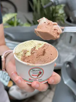 ig看到蠻多次,這次終於來試!但沒想到周末12點吃冰淇淋也要排隊😂,不過不用等很久~店內有少量內用位置,不過已滿了所以就在門口吃。有12種口味,一杯可以選兩種,有一半是水果口味感覺蠻fresh!🔅義式冰淇淋 (NT$120)選了開心果跟巧克力,開心果味也蠻香濃,巧克力味都不錯,不算甜。口感跟吃過的gelato比較來沒有很黏(?),比較像冰淇淋,不過是好吃的☺️。而且一杯比想像中大🤣,所以跟朋友都覺得cp值蠻高(香港一杯gelato要幾十港幣…)…Read More