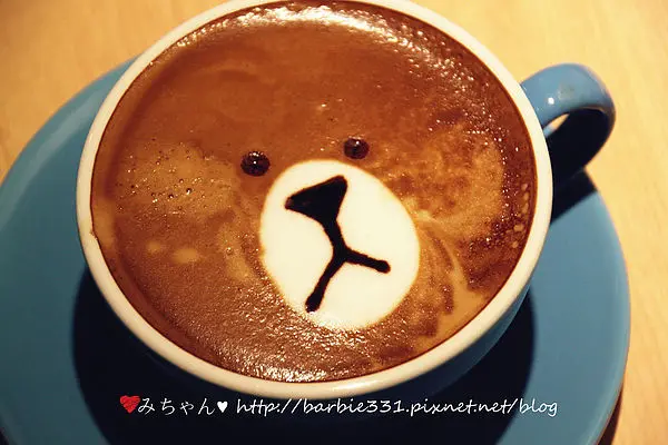 卡布 $100有了兔兔當然少不了熊大,老闆娘特別說了熊大的圖不好做耶!!為了要讓熊大的萌臉更完美的呈現,會使喝起來有點奶水分離影響到整體的口感,但其實我們都覺得還好耶~因為實在有喝過很糟的而且還沒有如此療癒的拉花