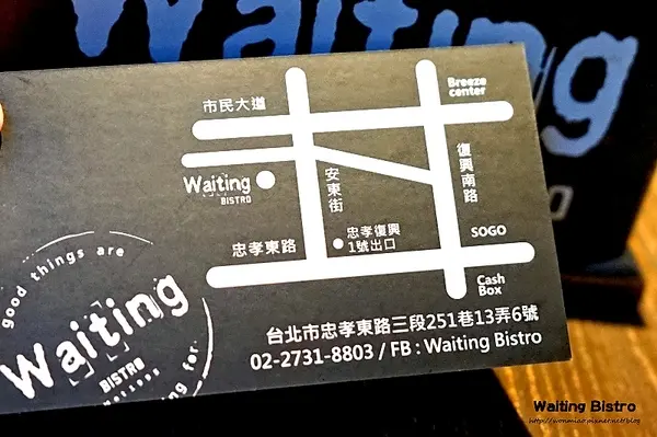 好吃的食物總是讓人心情愉悅放鬆~尤其在waiting bistro這裡品嘗過他們的美食後,讓我不知不覺陷入深深著迷的魔力!!Waiting Bistro粉絲團台北市忠孝東路三段251巷13弄6號1樓0928-233-583waiting bistro靠近忠孝sogo這一帶,雖然在巷弄內,但輕工業風的裝潢很快就找到了!!店內給我的感覺除了是輕工業風之外,還有著悠閒的美式氛圍!在這很適合三五好友小酌一番,一邊輕鬆聊天一邊品嘗美食牆上擺著各式各樣的酒,每一款都很有特色,讓人有選擇障礙阿~哈哈(附上菜單給大家參考)牛肋小山丘果然本尊如其名,牛肋條堆成跟小山一樣超誇張的而且我覺得他的牛肋條有花時間熬煮,充分地將醬汁鎖在肉裡,吃起來格外開胃軟嫩加上洋蔥的甜簡直完美,配啤酒絕對是不可或缺的開胃小點松露松阪豬燉飯散發濃郁松露香氣的松露松阪豬燉飯,以帕瑪森起士、風乾番茄、綜合野菇及薄片且煎過的松阪豬為組合當中所使用的意大利進口米芯帶有嚼勁,整道菜完全呈現口感細膩豐富的一面主廚的奶油蛋黃麵我覺得他的麵條煮得恰到好處保留了麵條最佳的口感,不僅有奶油的香氣同時還有微微的碳焦香,裡頭的培根吃來一點也不乾硬,而一旁的番茄乾有提味作用,帶出些許的甜味點綴超加分!!小酒館的凱撒雞肉沙拉清脆的蔬菜、煎的酥香的雞肉、麵包丁等最後加入刨絲的帕達諾起司甜甜鹹鹹凱撒醬則為整道沙拉增添了濕潤度,自然清爽分量十足!!英國水果啤酒-覆盆子蘋果酒 (酒精濃度5%)像氣泡酒又像香檳酒,口感不苦澀很順口,雖然他的水果香氣沒想像中那麼明顯,但我很喜歡,而且喝完後微醺的感覺好放鬆~美食好、氣氛佳怎能錯過入選elle推薦台灣百大必訪餐廳的waiting bistro呢~這絕對是聚餐必備的口袋名單喔!!…Read More