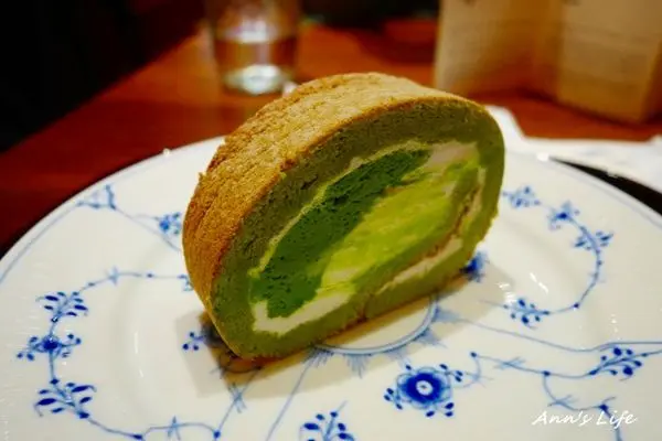 但最後我們倆都看中了新出的抹茶千層蛋糕套餐,因為無法達到低消金額,只好又再追加單點,這樣也好,對女人來說甜點總是有幾個胃都吃得下的,於是我單點了一片抹茶蛋糕卷,原本還在考慮要不要改選玄米口味,才不會全部都抹茶重複性太高,但我就是有一個抹茶魂,既然都來了就抹茶到底吧!