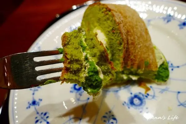 不得不說這抹茶蛋糕卷真是太好吃了!蛋糕體的濕潤柔軟度很棒,而且從側面看鮮綠色的抹茶奶油及鮮奶油在用叉子切下的瞬間傾瀉而出,模樣實在超吸引人!相較比較為人熟知的一保堂抹茶,平安京茶事選用的則是也相當知名的丸久小山園抹茶粉和法國鐵塔牌鮮奶油,抹茶的味道恰到好處,不會過甜或過苦,輕盈的鮮奶油更是讓極為討厭奶油的我也能夠接受,絲毫沒有油膩噁心感,吃完後差點有衝動外帶一整條回家!