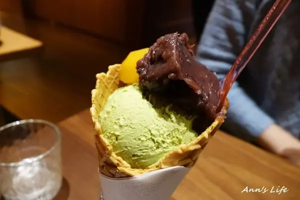 糊塗鈞大概是考慮已經點了千層蛋糕,單點就挑冰淇淋吧!只是這糊塗蟲還以為自己選了抹茶冰淇淋,直到餐點都送上了,我嘗了一口隨口說了句玄米冰淇淋也不賴,這傢伙才驚覺自己點的是玄米冰淇淋,果然是後知後覺第一名啊!冰淇淋可以選擇杯裝或是甜筒,玄米口味相當清爽,淡雅卻細緻,上方的紅豆泥很綿密,有吃甜點的幸福感。