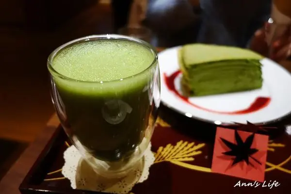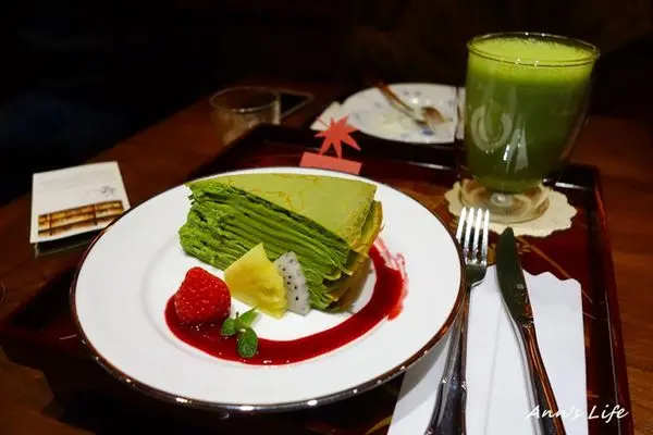 常常覺得我跟糊塗鈞吃東西的喜好真的很接近,每次兩個人一起出去吃飯,總是會選一樣的口味,想多介紹一種食物都沒辦法(攤手),所以這套抹茶千層也是又點了兩份一樣的,差別只在我們選擇的飲料不同,蛋糕就留到後面再說分明吧!
