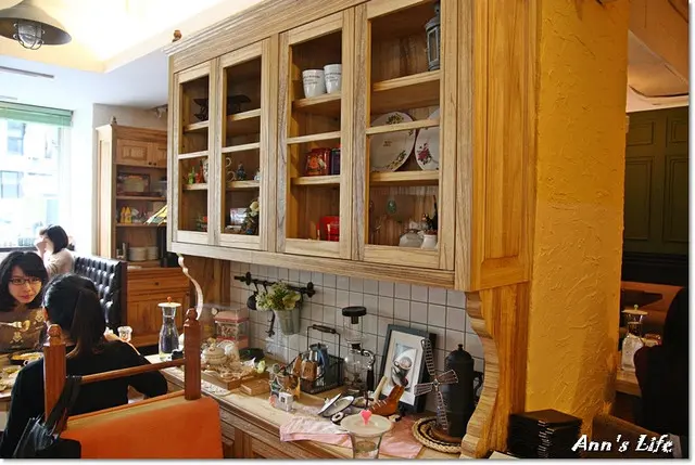 鄉村風的櫥櫃,隨性擺上雜貨就很有FU,雖說我們的桌椅也是刷上灰藍的木頭,像是想刻意營造鄉村氣氛,但店內的其他家具和裝潢,又好像不完全是走同一種風格,只知道有不少網拍賣家會來這裡租借場地拍照,強調沒有華麗杯盤擺飾的方糖咖啡館,在室內裝潢上其實也沒有馬虎,只是比較難定義而已,anyway,姑且算是混搭式鄉村風吧。