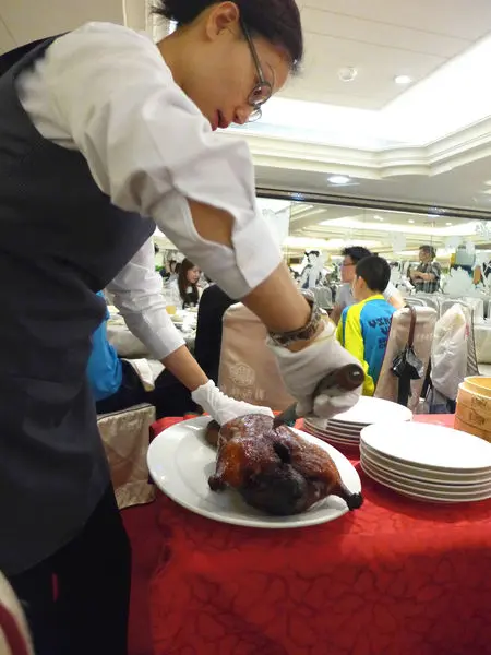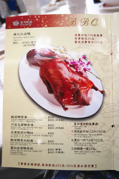 氣派挑高的格局人聲濎沸,只見服務生都快忙不過來了,豪華的氣氛不輸老店,但我更喜歡老店的懷舊滋味!鎮店招牌是道地的港式片皮鴨,每次來都一定要點這道!