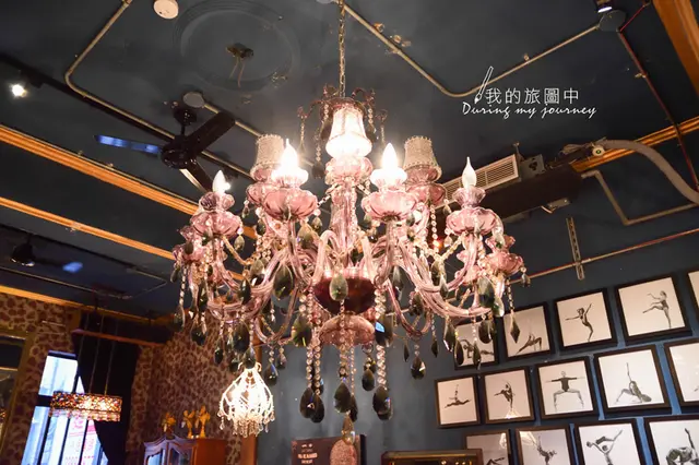 二樓則是延續一樓復古優雅的巴洛克風格,天花板垂吊著許多閃閃發光的水晶吊燈,