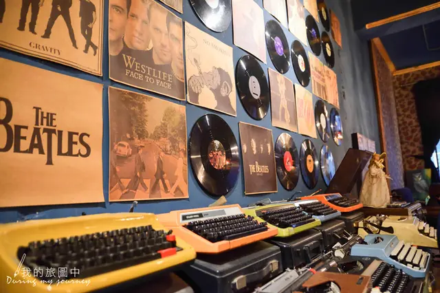 後面區域一旁的牆壁掛上了有年代的黑膠唱片,覺得格外的復古,
