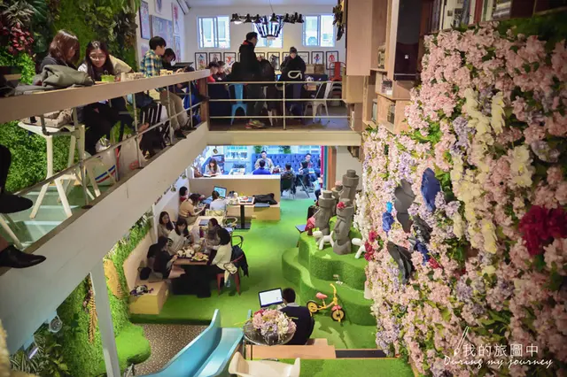 牆壁佈置成挑高書櫃和夢幻唯美的花牆,讓喜歡拍照的少女們瘋狂。