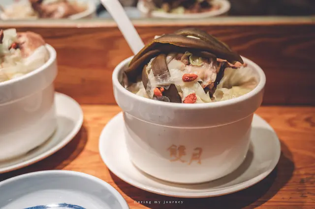 雙月食品社宛如媽媽親手煮上一份健康用心的餐點,堅持選用上等的食材,提供干貝燉雞腿湯、金鮮鱸魚蛤蠣湯、薑絲蚵湯、香拌意麵、滷肉飯、雙月油飯、吹風滷味等等,每一間分店的菜單略有不同,比如雙月油飯就是青島店限定的