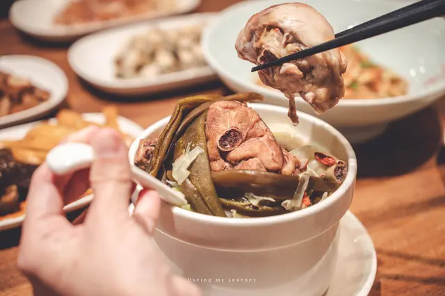 每一份雞湯都是現點現煮,採用湯肉分離煮法,可確保雞肉的品質,干貝燉雞腿湯飽滿的小珠貝鋪滿了雞湯,使用雞架雞爪熬製8小時熬出經典雞湯底,同樣加入高山高麗菜增添甘甜的滋味,還能品嘗到薑絲的香氣融入在湯底中,朋友特別喜歡這鍋雞湯。
