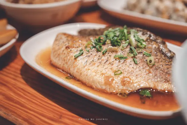 採用每天產地直送的新鮮鱸魚,並且用醬油調味過,魚肉少刺細緻好入口,吃得出魚肉的鮮美和滑嫩,我們兩個人一下就將鱸魚吃完了。