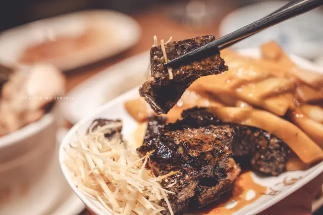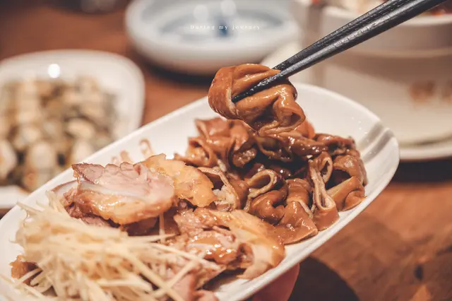 可口的吹風滷味,是使用雞高湯和純釀醬油滷製而成,不添加化學食材,滷完皆需吹風待涼,因此滷味的顏色會隨著季節、濕度深淺不一,每一口都品嘗的到甘甜和香醇,並不過度死鹹;幸福好腸的口感偏向軟嫩有彈性,朋友很喜歡,脆脆生腸和月亮骨肉則有明顯的脆感,推薦給喜歡吃軟骨的人。