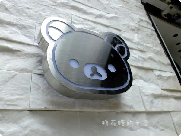今天敏敏恰巧到東區吃午餐~路過這家閃耀可愛氣息的咖啡店,白色的外牆~適用大理石塊砌成的,門口的柱子上就有銀色的拉拉熊大頭~可愛耶!