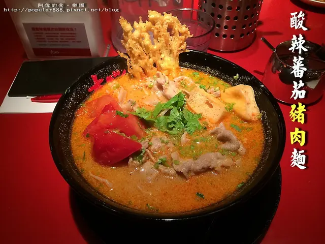 阿偉點了這道" 酸辣蕃茄豬肉麵"(NT.180+10%)