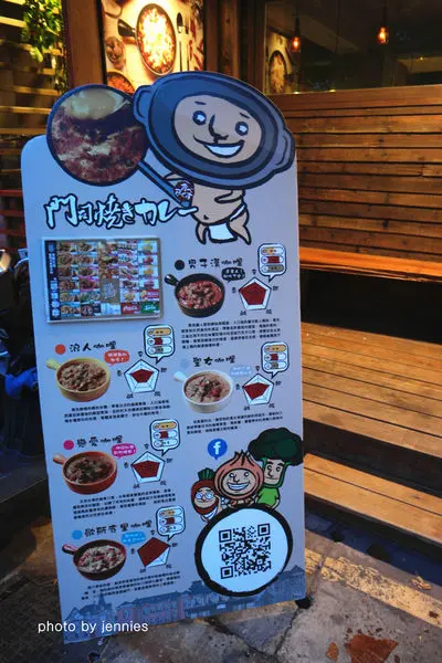 焗烤咖哩在日本稱為燒咖哩;簡介上寫著就是在白飯淋上咖哩、起司和雞蛋後,用烤箱去烤。走到門司燒的門口,木質設計的溫潤感讓人好像走進一間童話小屋裡呢!也有點像是賣日式料理的餐廳。燒咖哩源自於日本的九州-門司港,其歷史據說已有六十年之久。