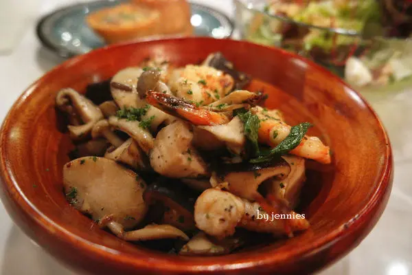 雪莉酒炒野菇鮮蝦NT360元-認真覺得沒有讓我很驚豔,東西不難吃而且辛香料用的不錯,但覺得食材略少一些,價格又偏高,蝦子只有五隻,酒味不足。但這道屬於比較下酒的菜,份量尚可!