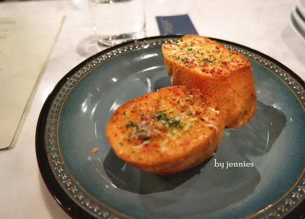 麵包不可再續,質感偏硬但卻越嚼越香,有蒜香的味道,鹹甜的融合在嘴裡層次多變,但不夠燙口,麵包我喜歡熱騰騰的。