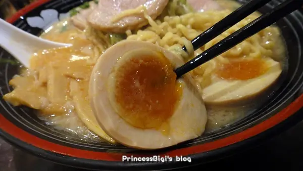 麵加大免費,他的麵條超彈Q,我超愛他的麵條,還好老公的有加大,不然就不夠我吃耶!!! 湯頭則是非常醇厚的豚骨濃湯,口味很重,也蠻鹹地,但確定也很道地,日本拉麵的豚骨湯就該是這樣呀!