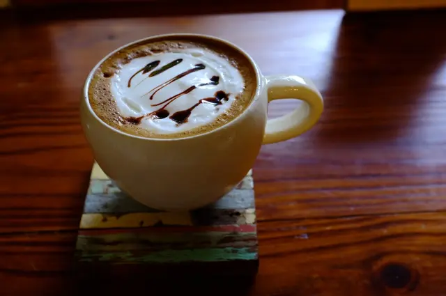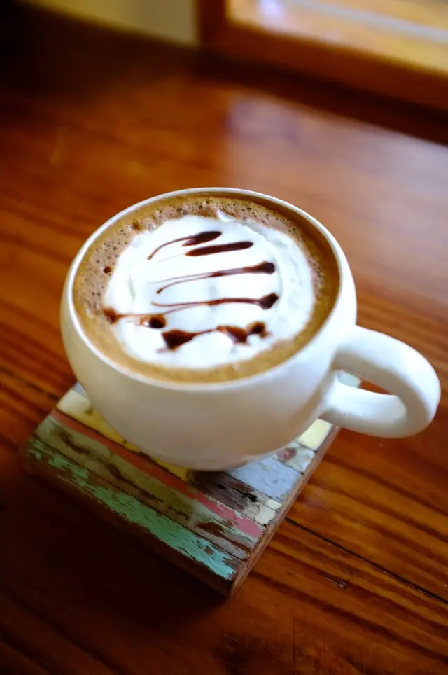 點了巧克力摩卡,店內頗安靜,聽著沖煮咖啡的聲音同時也傳來巧克力濃郁的香氣讓我很期待等下的摩卡,實際上桌後果然香氣四溢,搭配上斑駁的拼接木頭杯墊,不只在氣味,外觀都先讓我滿足了,實際喝之後口感濃郁但又順口喝的出用心。