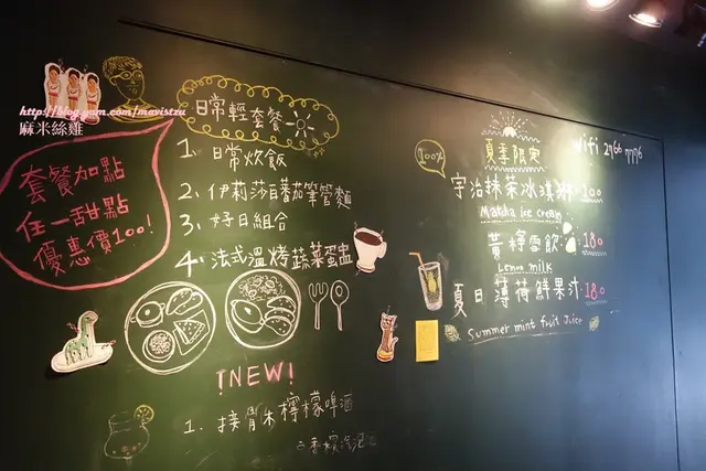 黑板上寫著餐點,筆管麵看起來好好吃阿~不過已經吃飽了