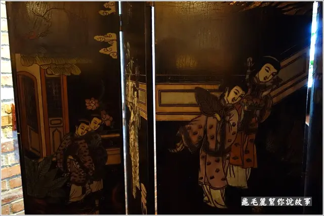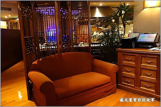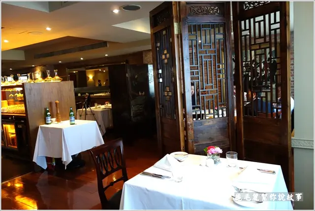 善用屏風製造出包廂隔間效果,而且屏風的質感和上面的仕女雕花,超美的。