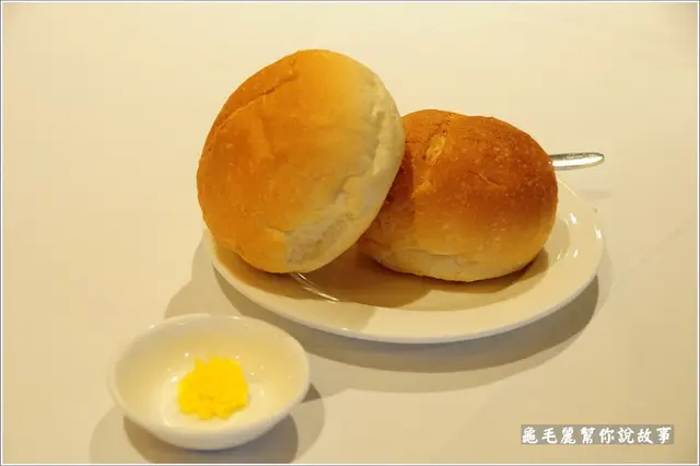 一入坐,會先送上水和熱呼呼的餐包,我覺得成雙的餐包拍起來比較美,所以多要了一個。