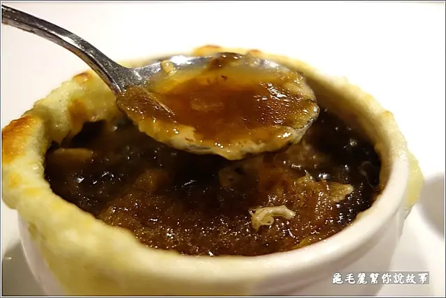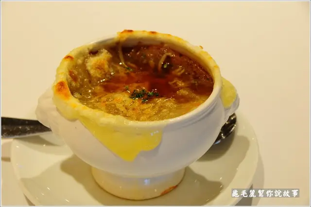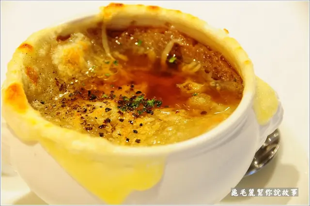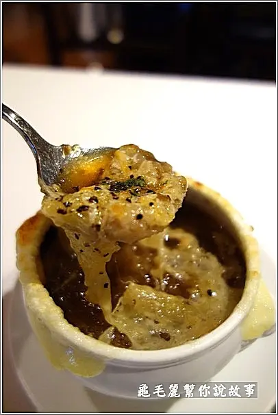 用調羹一撈,就可以牽出長長的起士絲,還有滿滿的洋蔥絲,