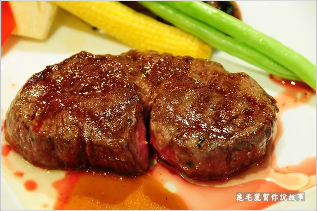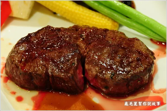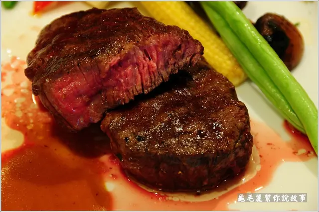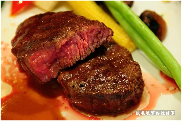 於是很少吃五分熟牛排的我,嘗試了五分熟的菲力,在拍照過程中還有一些血水流出…