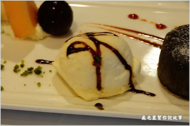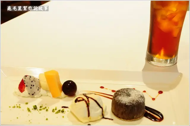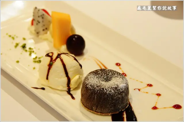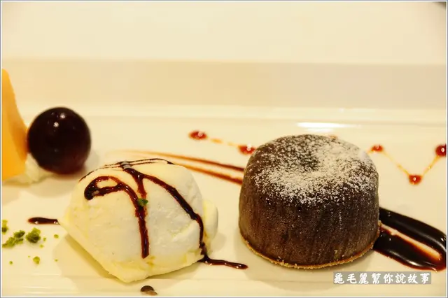 瞧這熔岩熱巧克力蛋糕一上桌,就完全擄獲我的心,它就像是一幅畫般的精緻美麗。