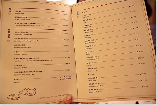 連桌墊與盤子還有菜單都是無所不在的拉拉熊。