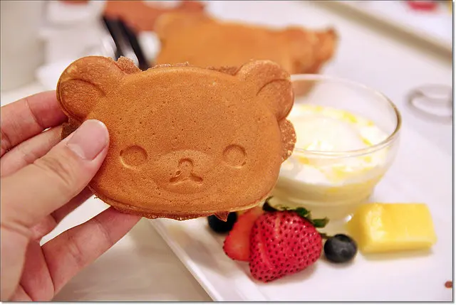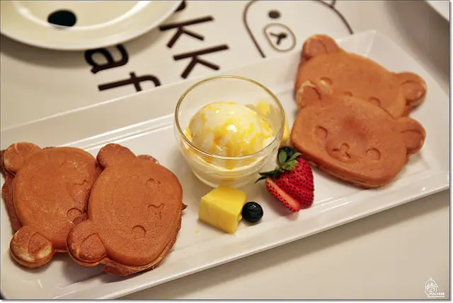 拉拉熊可愛鬆餅,吃起來很Q很有彈性的鬆餅,比我想像中的好吃,沾點冰淇淋會更美味。