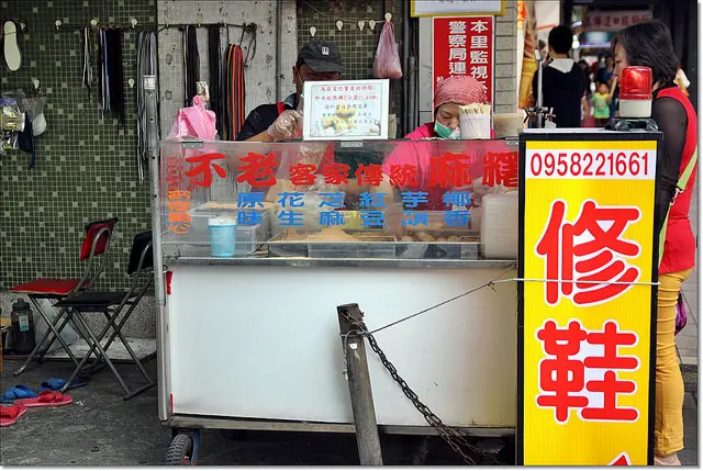 在台北,這種排隊人潮並不稀奇,只是一家賣麻糬的小攤販可以排成這樣頗壯觀,就連路過的行人都覺得不可思議,直問我說這家麻糬有什麼特色嗎?可以這麼有名?我說其實就是便宜好吃又實在這樣,說起來也是賣吃的很簡單的道理與應該有的特色,只是不知道為什麼,在現今的社會裡,便宜、好吃、料實在,好像沒這麼容易找的到了,因此這種良心的小吃每一家店都彌足珍貴。