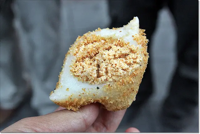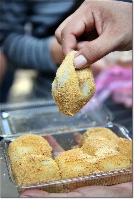 還沒裹花生粉之前的麻糬甚至看的到餡料,餡料真的包很飽滿。