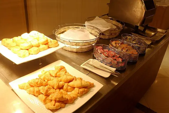 麵包區有可頌等等種類可以選 可以拿取果醬及奶油搭配